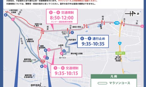第4回鷲峯山麓ハーフマラソン大会開催に伴い、以下の通り交通規制を実施いたします。周辺を通行される皆様にはご迷惑をおかけいたしますが、何卒ご理解とご協力の程よろしくお願い申し上げます。
